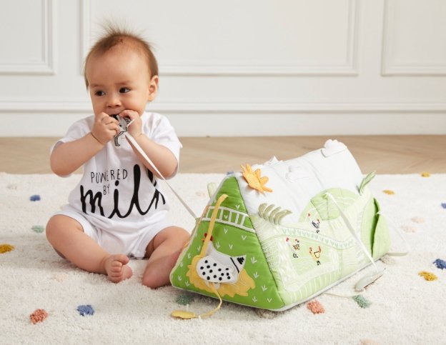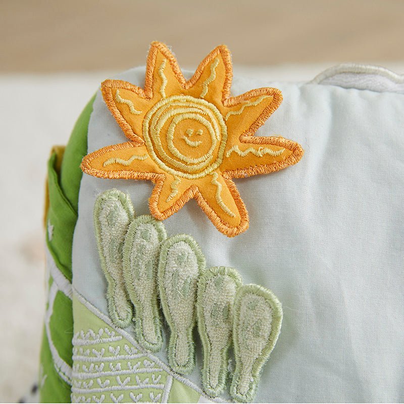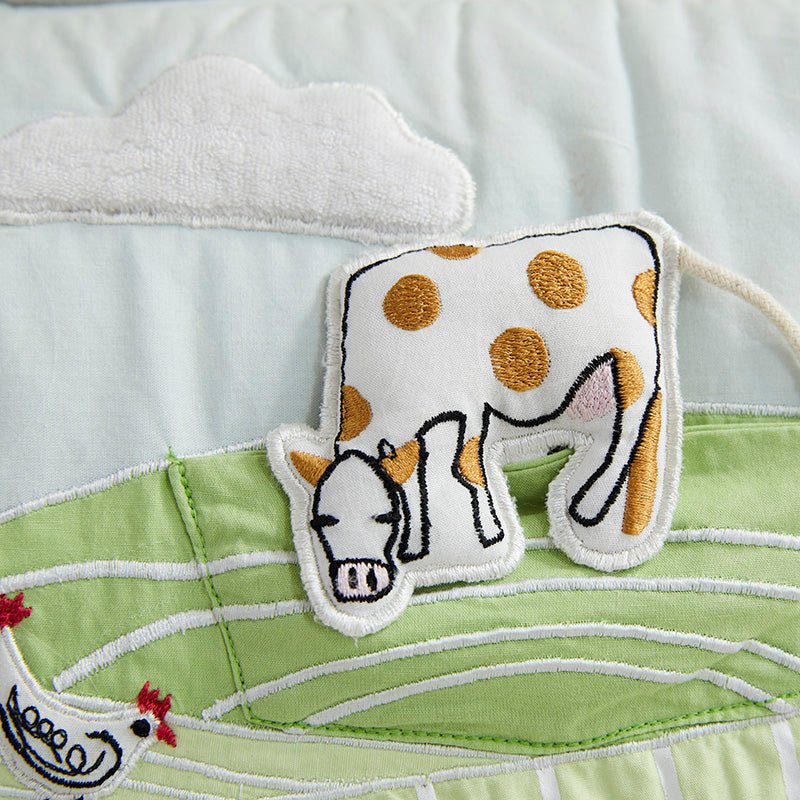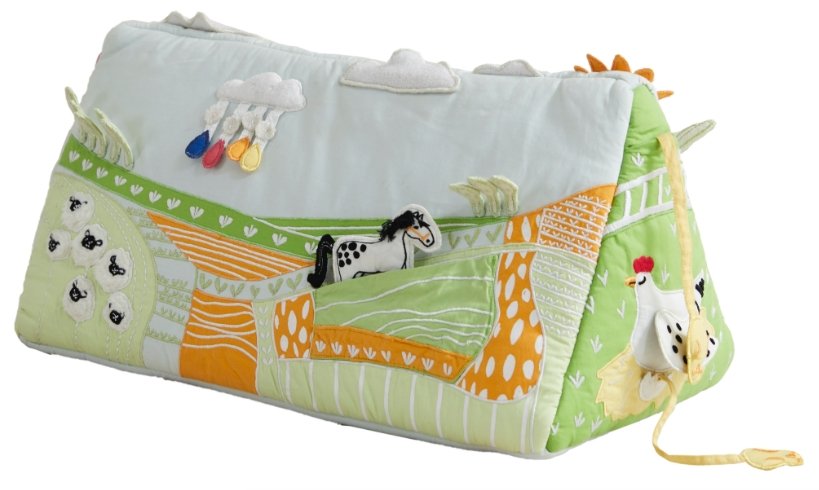 Your baby will love their trip to the farm–the Farm Baby Activity Mat.  Every detail contains a delightful surprise of texture, color, and sound.  The animals are tethered into the pockets so baby can develop fine motor skills.  Truly a beautiful keepsake, and makes a wonderful gift!