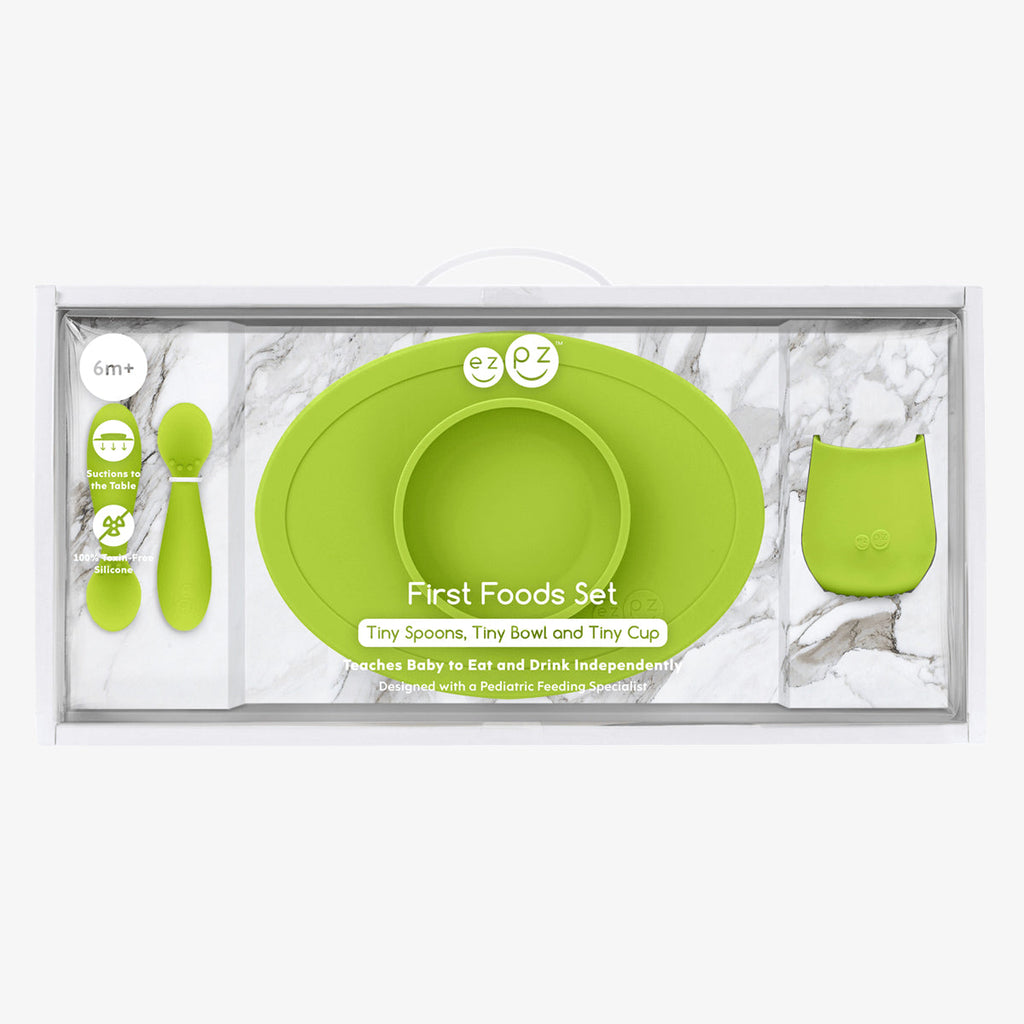 Most parents introduce first foods to their baby at 4-to-6 months of age. This experience can be fun, but it also can be messy, stressful and overwhelming. With the First Foods Set ezpz provides all of the developmental tools you need to set baby up for mealtime milestones – plus calm & confident parents!