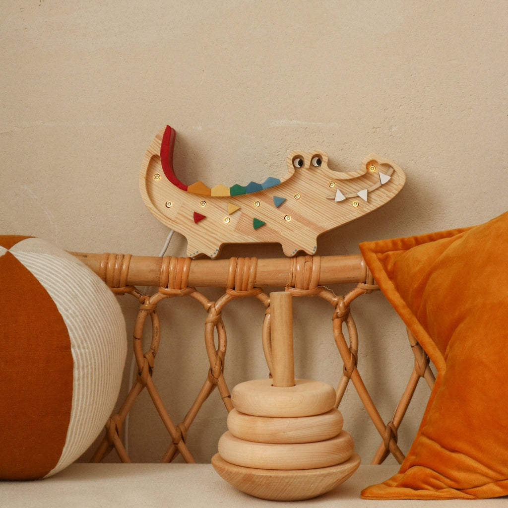 This high-quality children's night light is handmade from 100% natural pinewood, making it as strong and durable as it is beautiful. The cute and friendly Little Lights Mini Crocodile Lamp is the perfect adorable reading or sleeping companion for any animal loving toddler. Add some fun to your little one's bedtime routine by snapping one up today!
