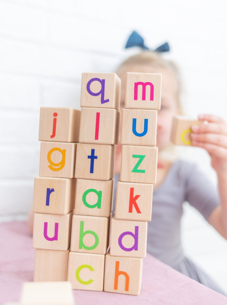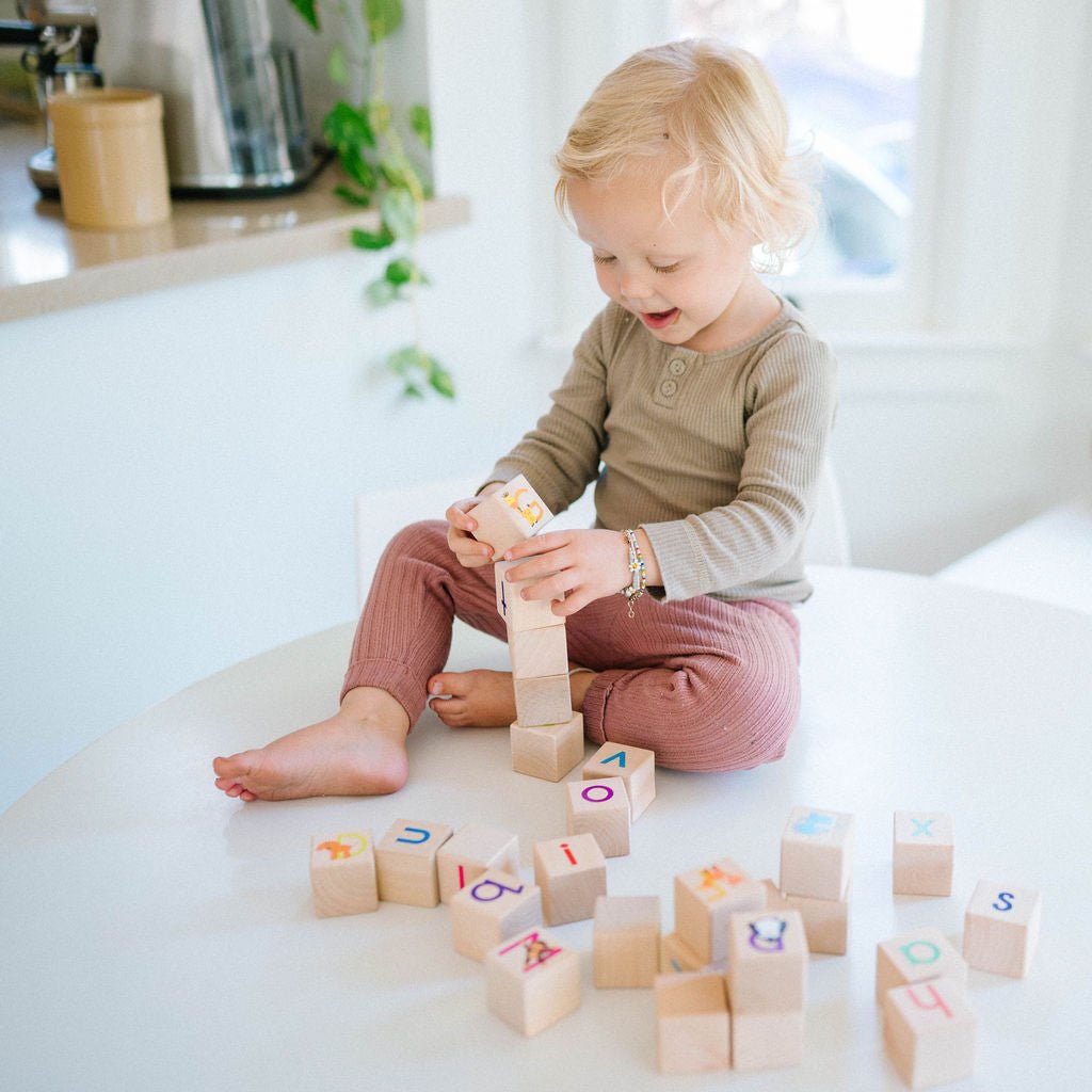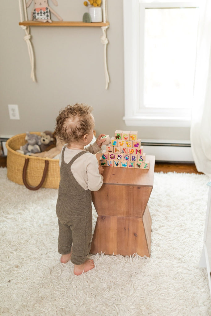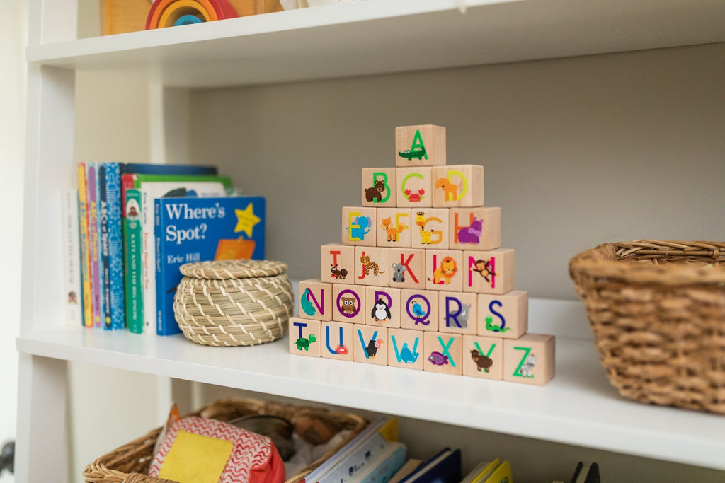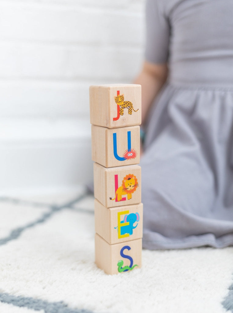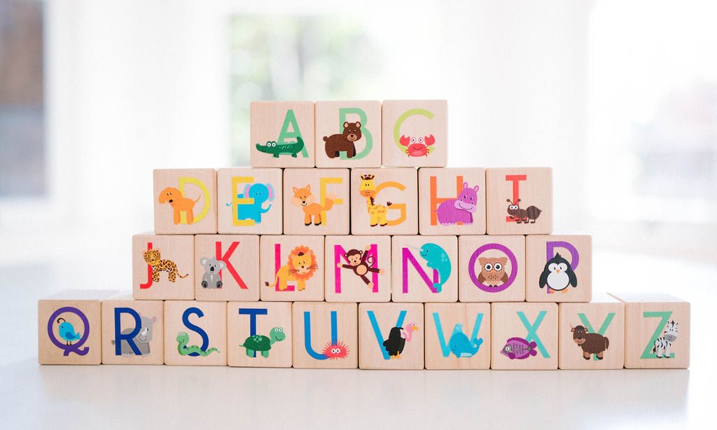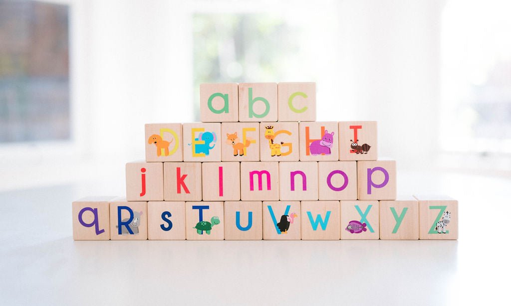 Lions and tigers and bears, oh my!   This FUN set of maple animal alphabet blocks is sure to make your kids smile while they play!  Made from maple hardwood, this set of blocks  has a capital letter with animal on one side and the corresponding lower case letter on the opposite side.  A great educational tool, learn letters, spelling, motor skills, colors, counting, patterns, and more.