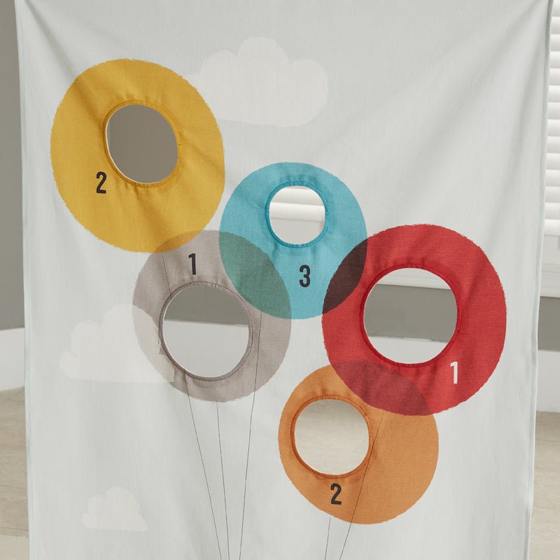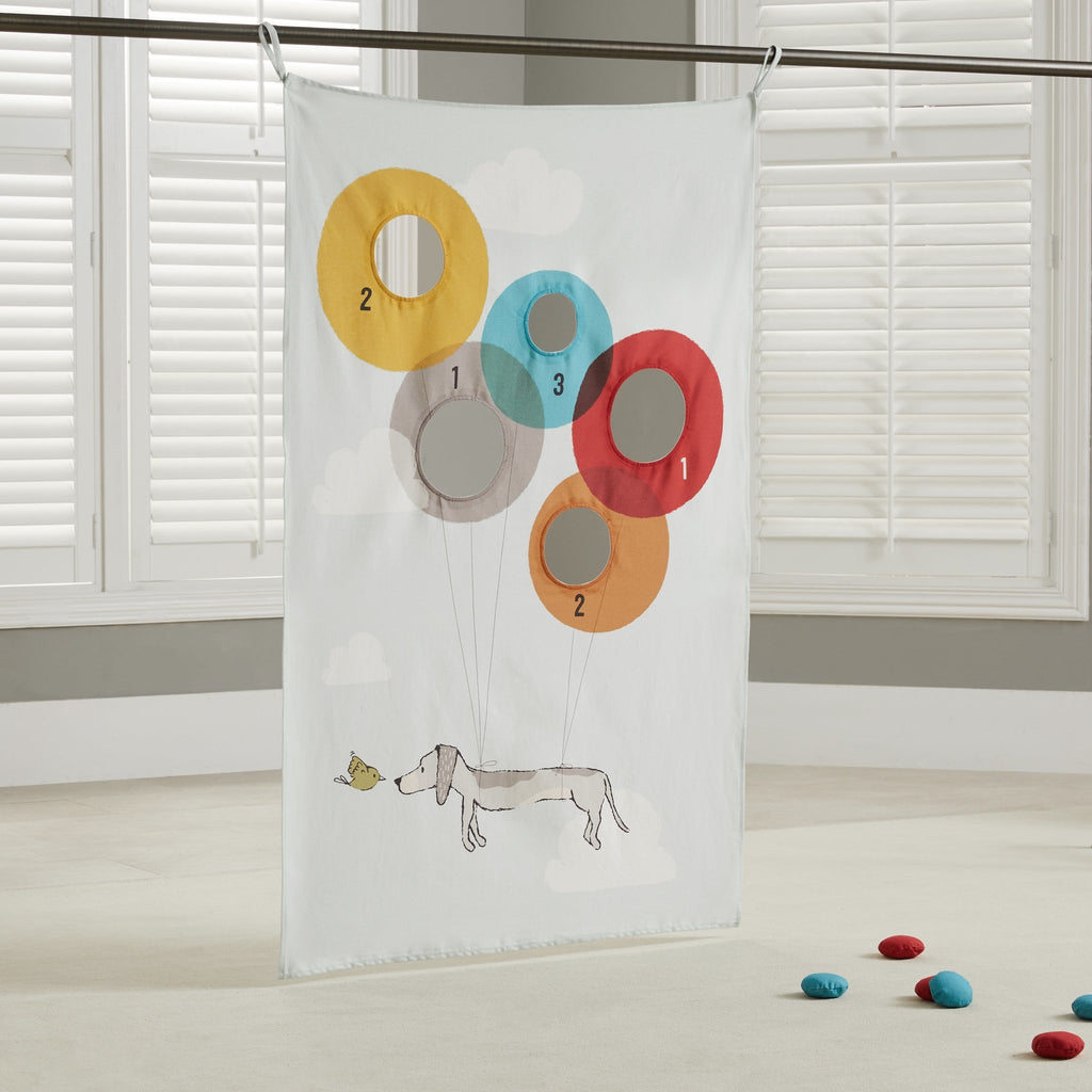 For great indoor fun, make sure you have our 100% cotton canvas Dog Day Doorway Bean Bag Toss on hand.  Hangs in any doorway for great space saving.  The loops thread through the rod pocket and hang on thumbtacks or nails (not included).  Includes 6 bean bag tossers.  Play alone or with friends. Folds neatly for storage.