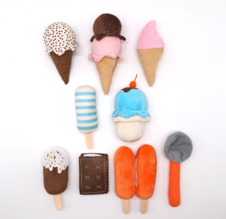 I scream, you scream, we all scream for ICE CREAM! It feels more like summer with our Ice Cream Play Food. Our set is complete with sundae, soft swirl cone, double dip ice cream cone, chocolate chip single dip, ice cream sandwich, push up, popsicle that can be detached to share, and a scooper to serve it all up. What a treat! 3+