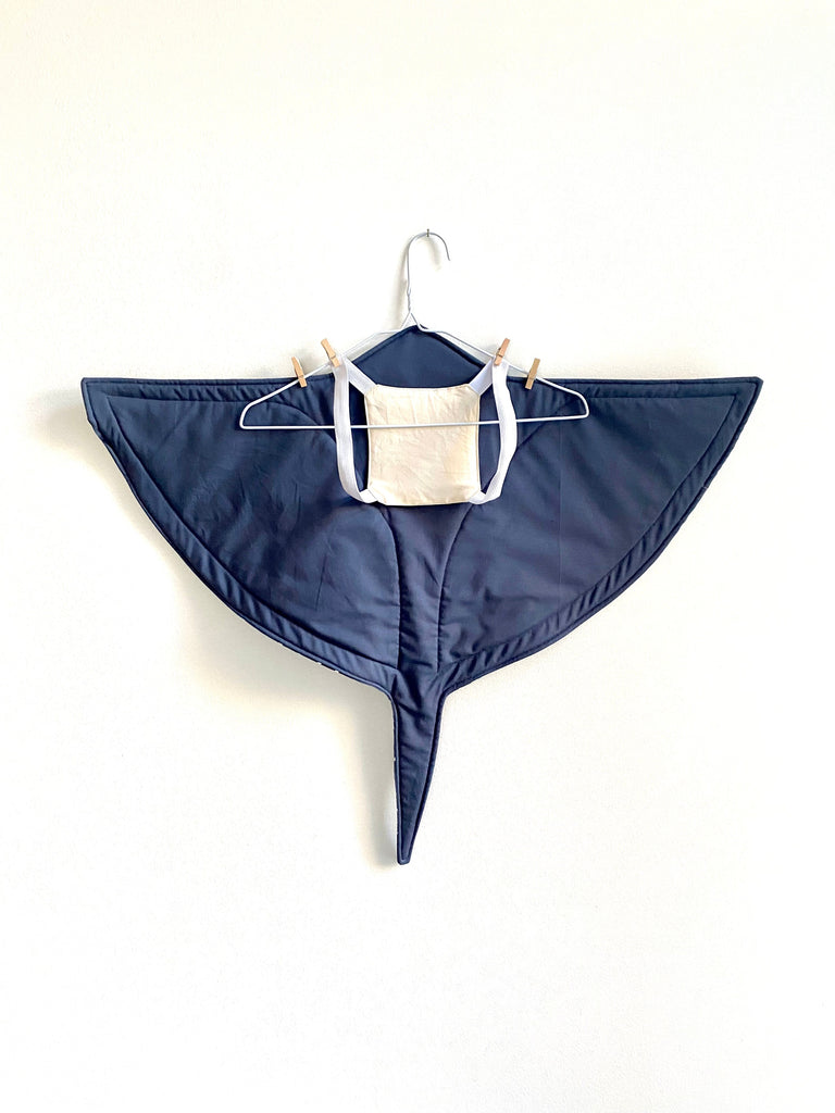 Soar through the ocean with this kids stingray costume, made with the softest blue cotton and realistic hand-painted white spots. Perfect for an under the sea outfit or party theme. Playing dress up has never been so enchanting!