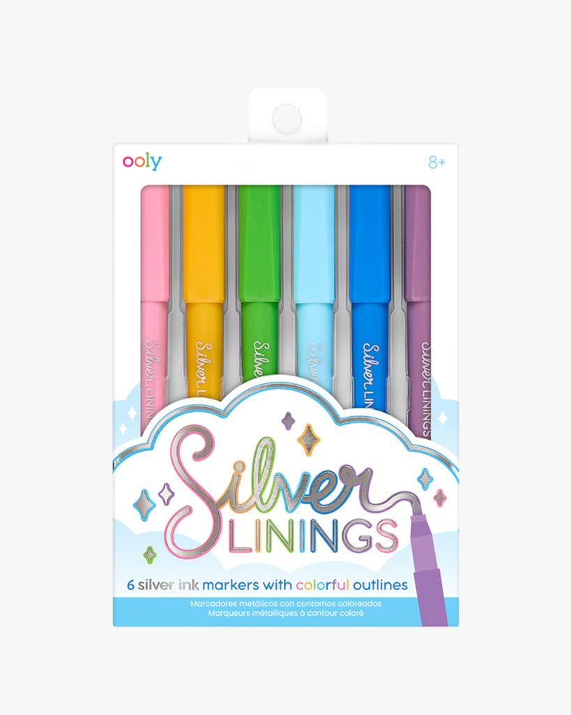 This all-in-one self outline marker features 6 colors that lays down a colored outline as you draw with the silver ink. These outline markers have 6 different complementary colors to provide the outline to the beautiful silver metallic inside. The outlining color is automatic as you mark or draw, creating wonderful art or craft projects. In this set of 6 all the inks are acid free as well.